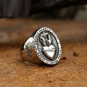 Vintage Dropshipping Stainless Steel Ladies Mens Biker Punk Sacred Heart Of Jesus God Ring Cross Amulet Jewelry For Man Gift (Color: 02Steel color, size: 14)